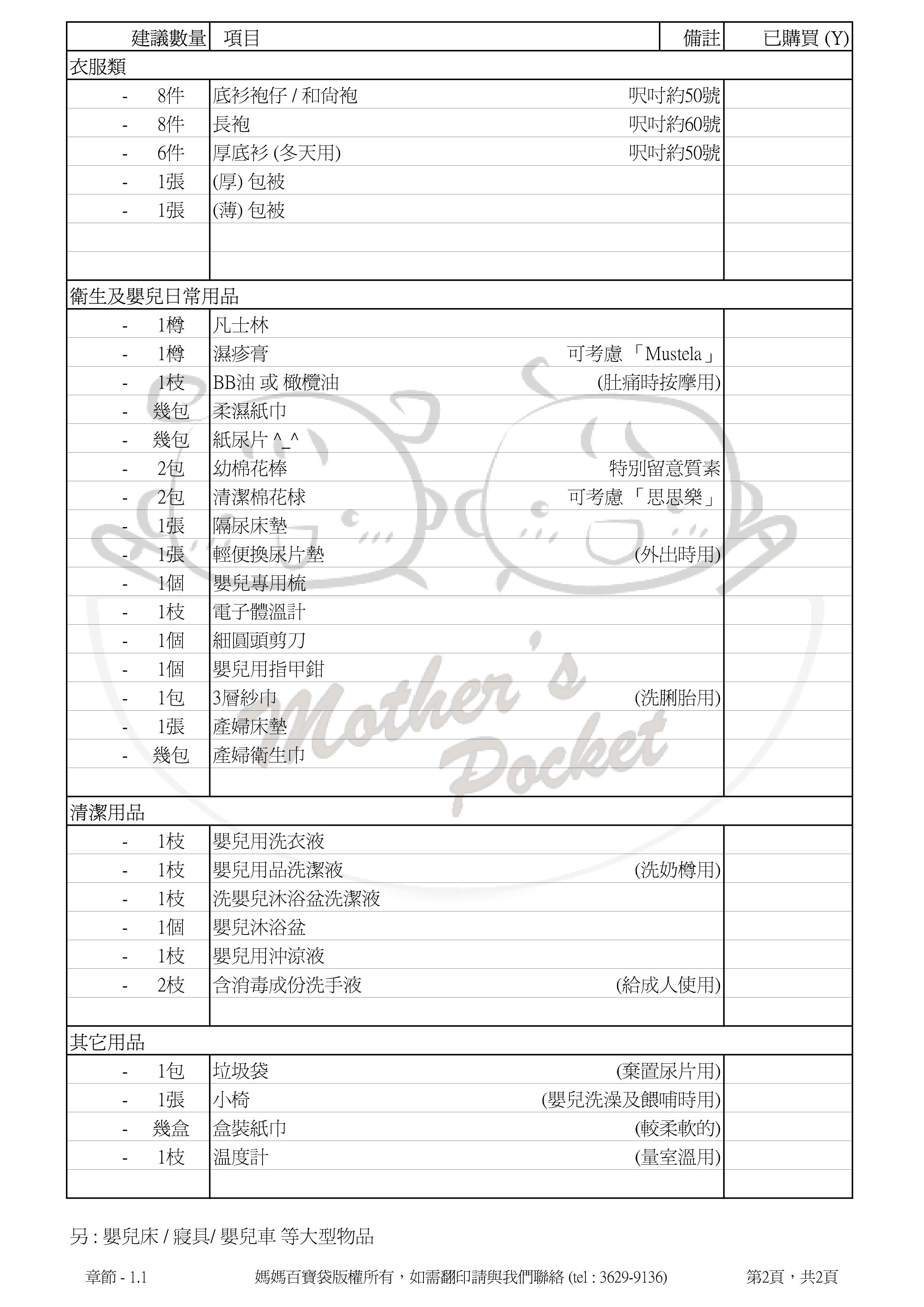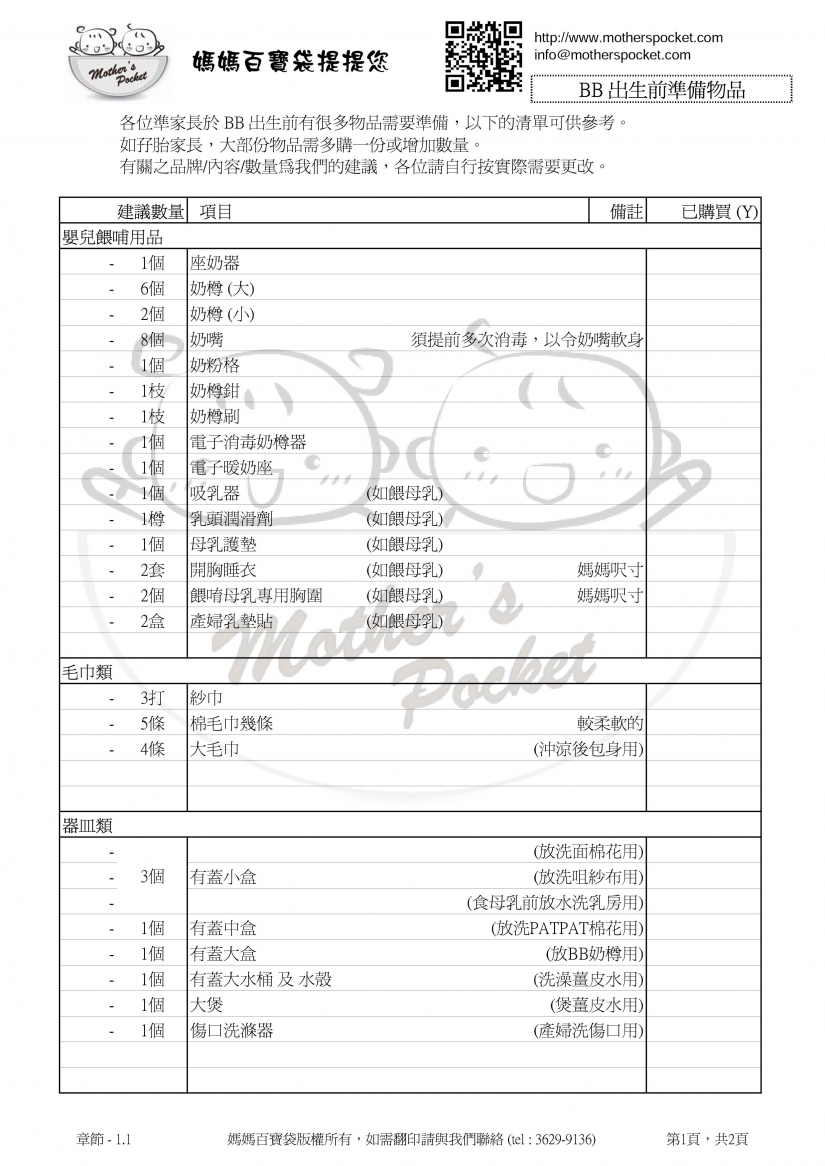 孕媽產後資訊站 - BB 出生前準備物品